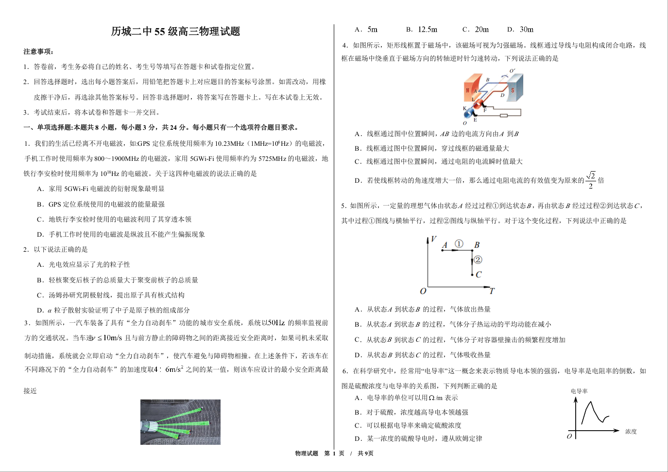 济南市历城二中2020.10高三年级学情检测物理试题及答案