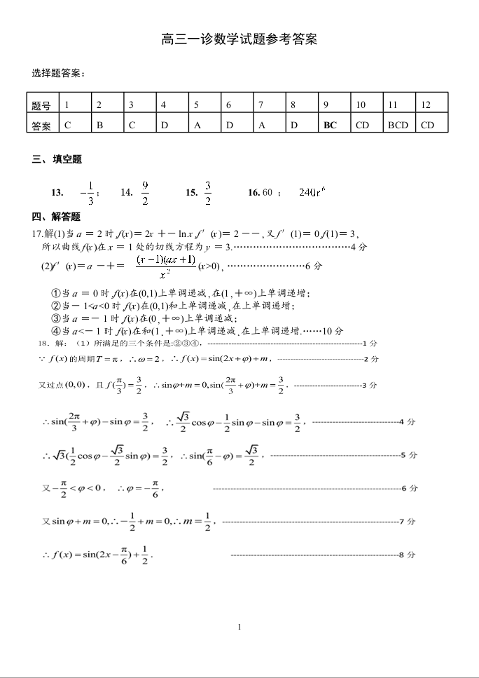 山东省实验中学2020.10高三年级第一次诊断考试数学答案