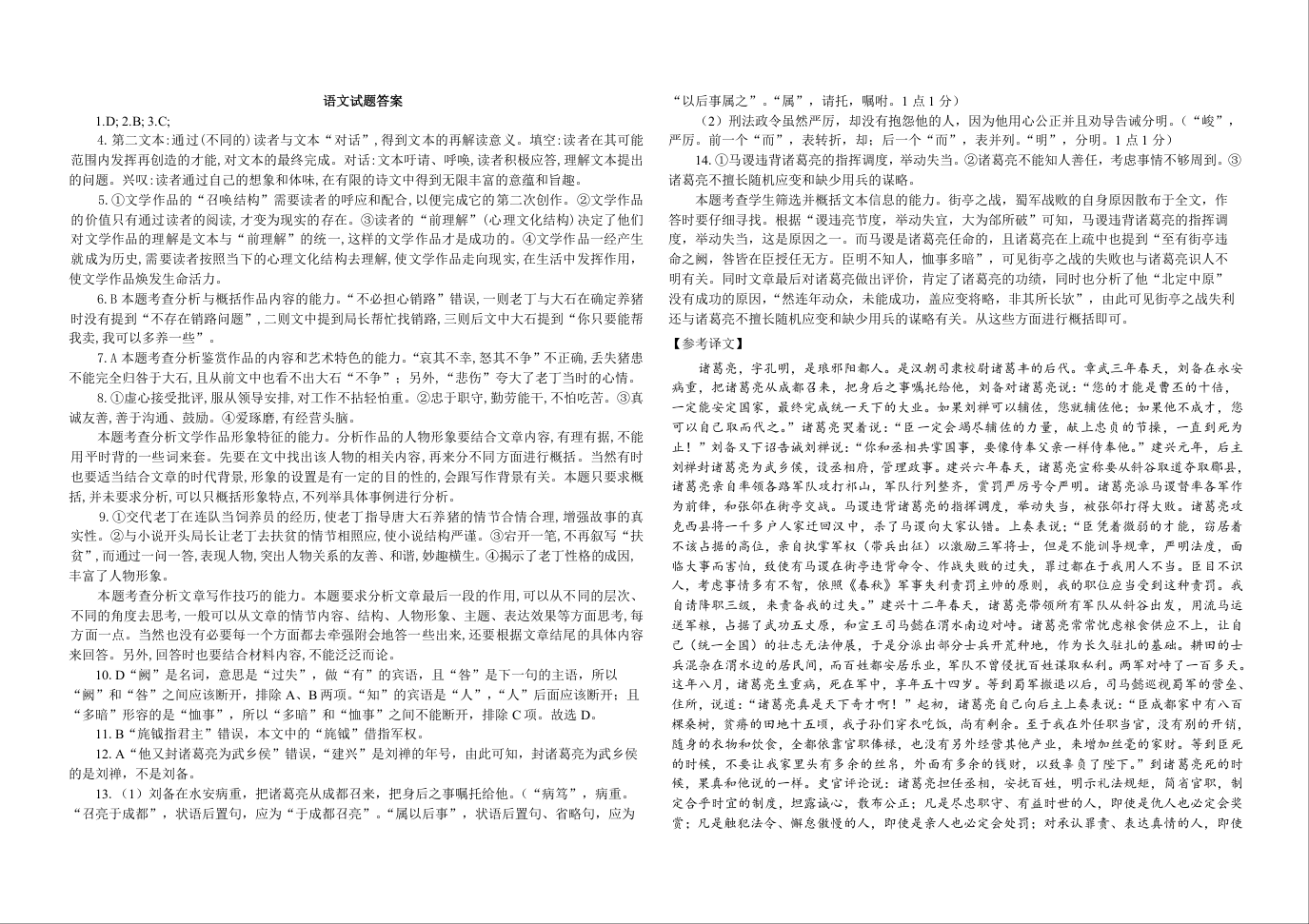 济南市历城二中2021.1高三复习检测试题语文答案