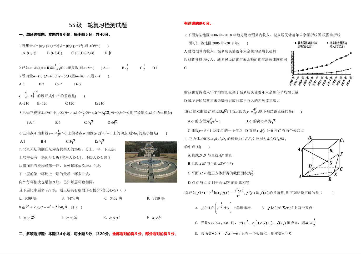 济南市历城二中2021.1高三复习检测试题数学及答案