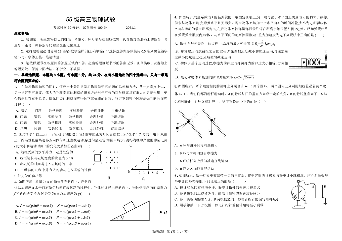 济南市历城二中2021.1高三复习检测试题物理