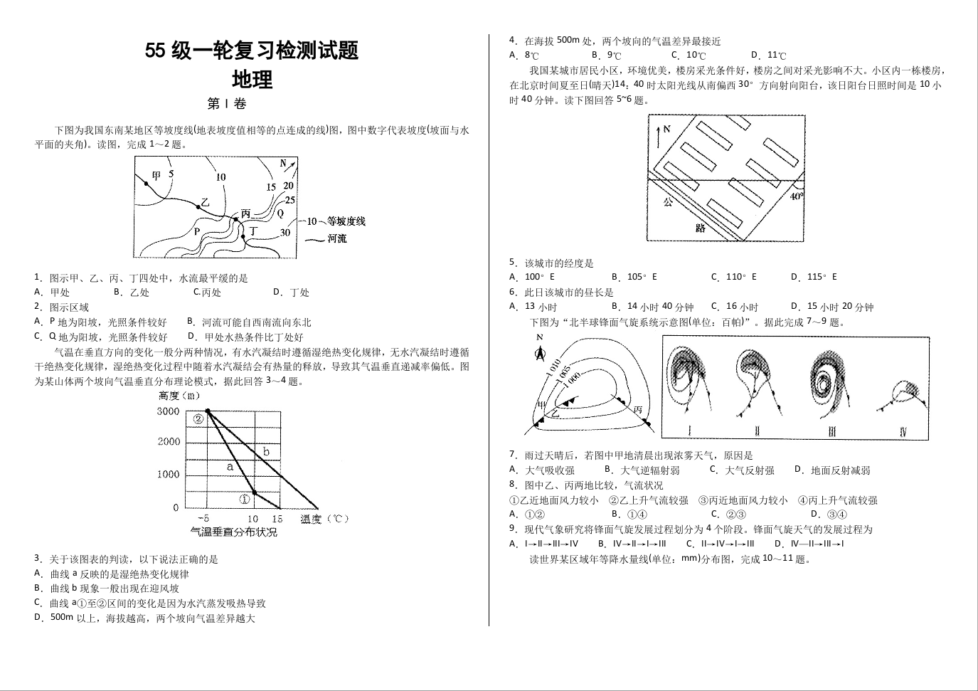济南市历城二中2021.1高三复习检测试题地理及答案