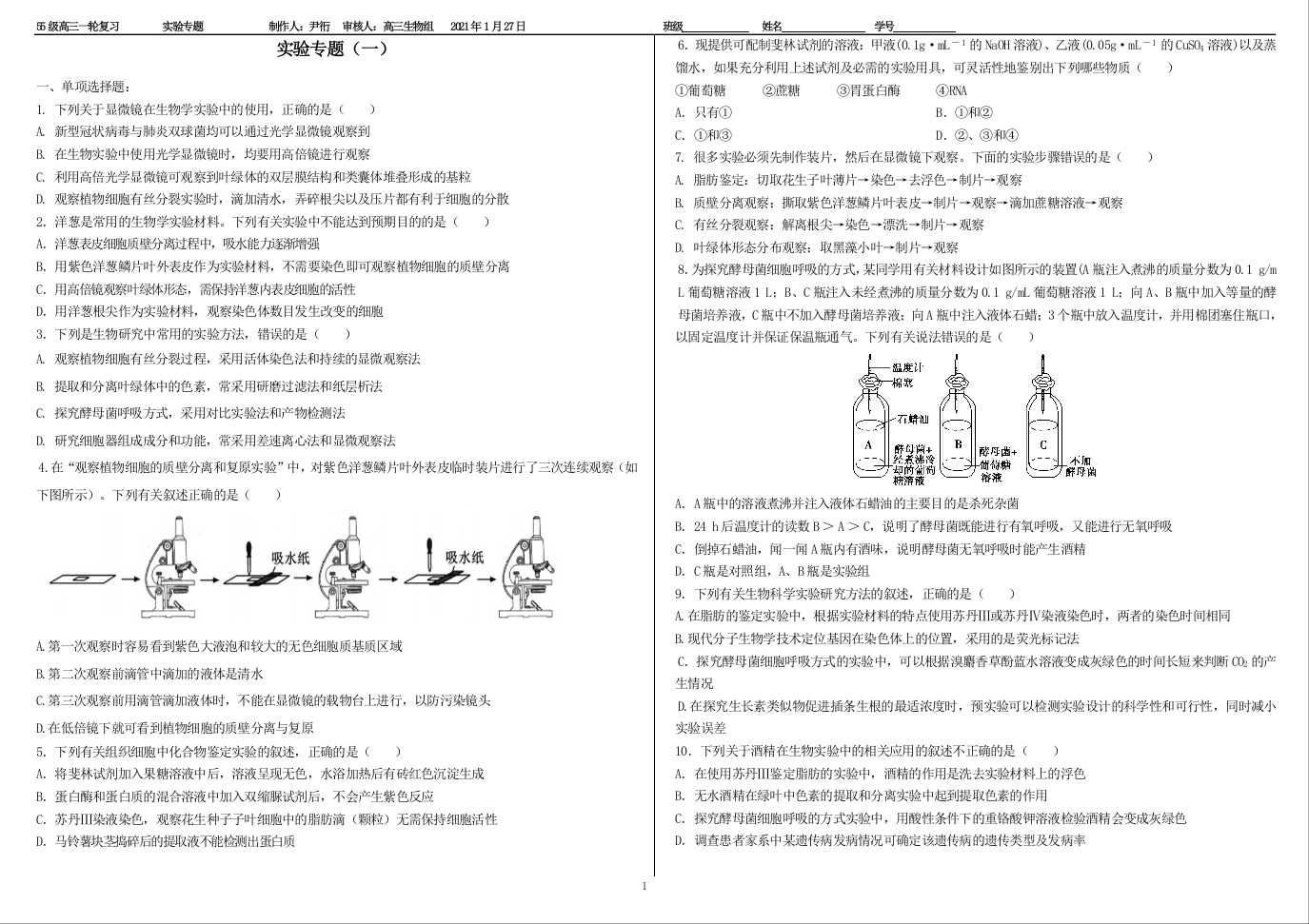 济南市历城二中2021.2高三假期检测试题生物及答案