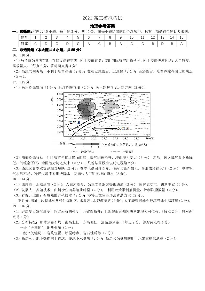 山东省济南市2021.3高三年级第一次模拟考试地理答案