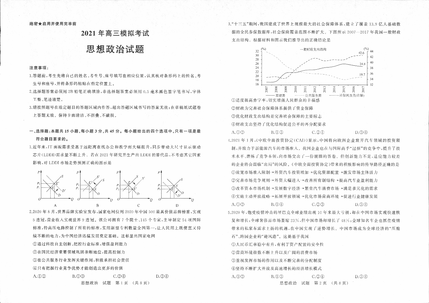 山东省济南市2021.3高三年级第一次模拟考试政治