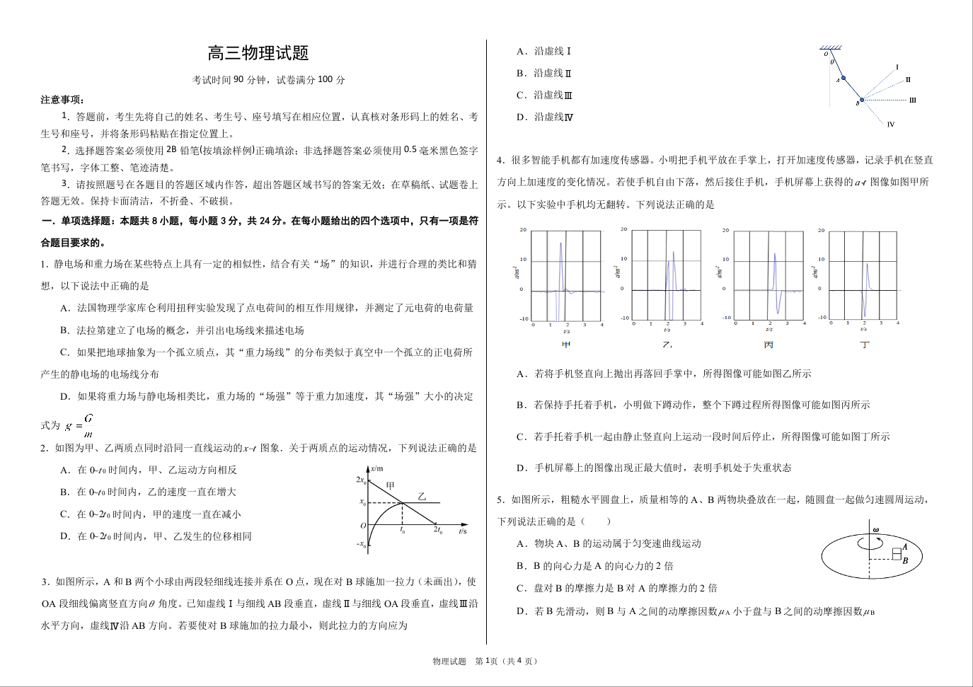 山东省济南市2020.11高三年级期中检测考试物理