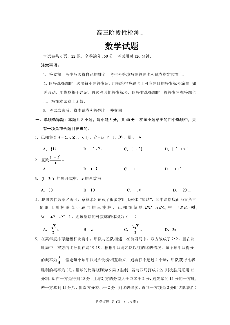 山东省九地市2020.12高三年级阶段性检测数学