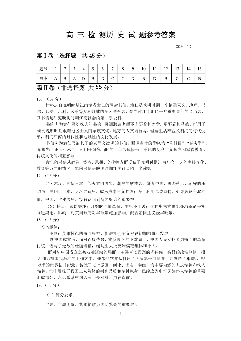 山东省九地市2020.12高三年级阶段性检测历史答案