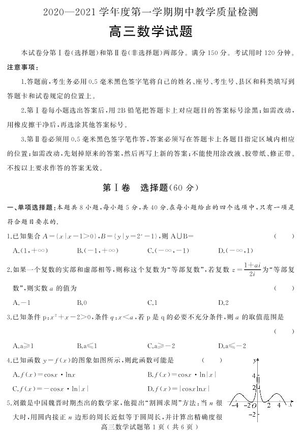 山东省聊城市局部2020.11高三年级期中教学质量检测数学试题及答案
