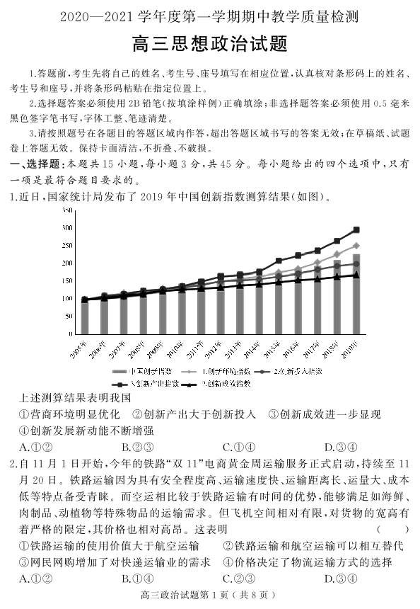 山东省聊城市局部2020.11高三年级期中教学质量检测政治试题及答案