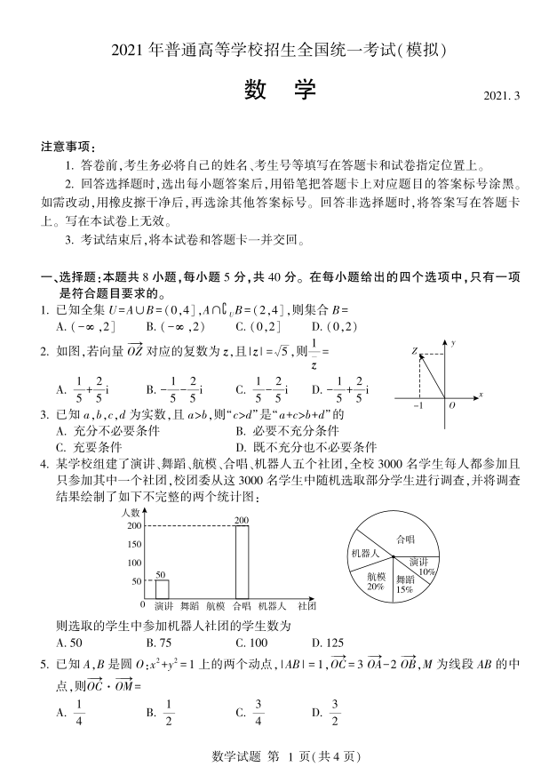 山东省临沂市2021.3高三年级第一次模拟考试数学及答案
