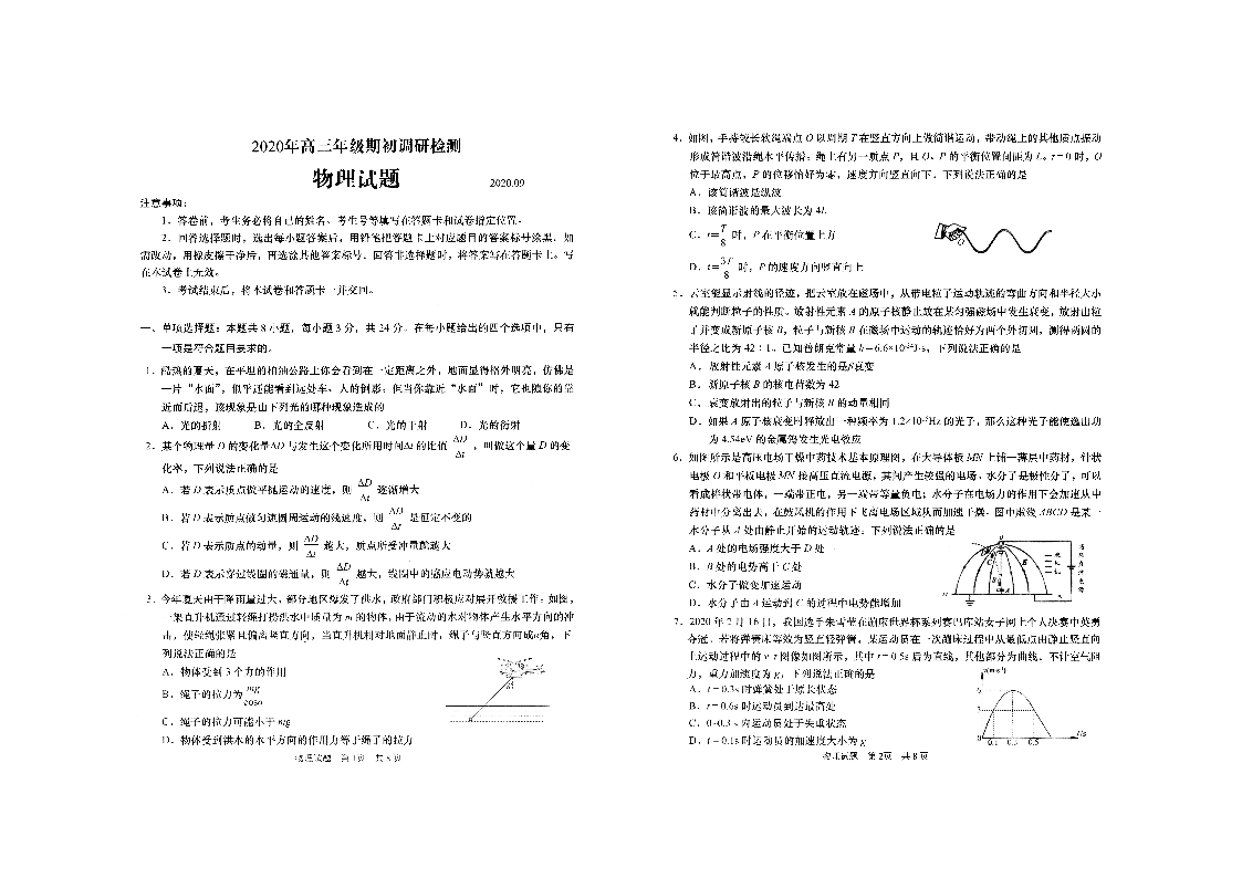 山东省青岛市2020.9高三年级期初调研检测试题物理