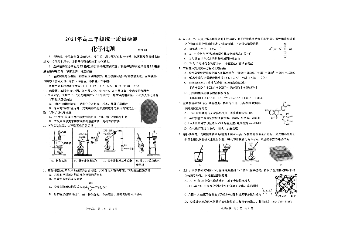 山东省青岛市2021.3高三年级第一次模拟考试化学