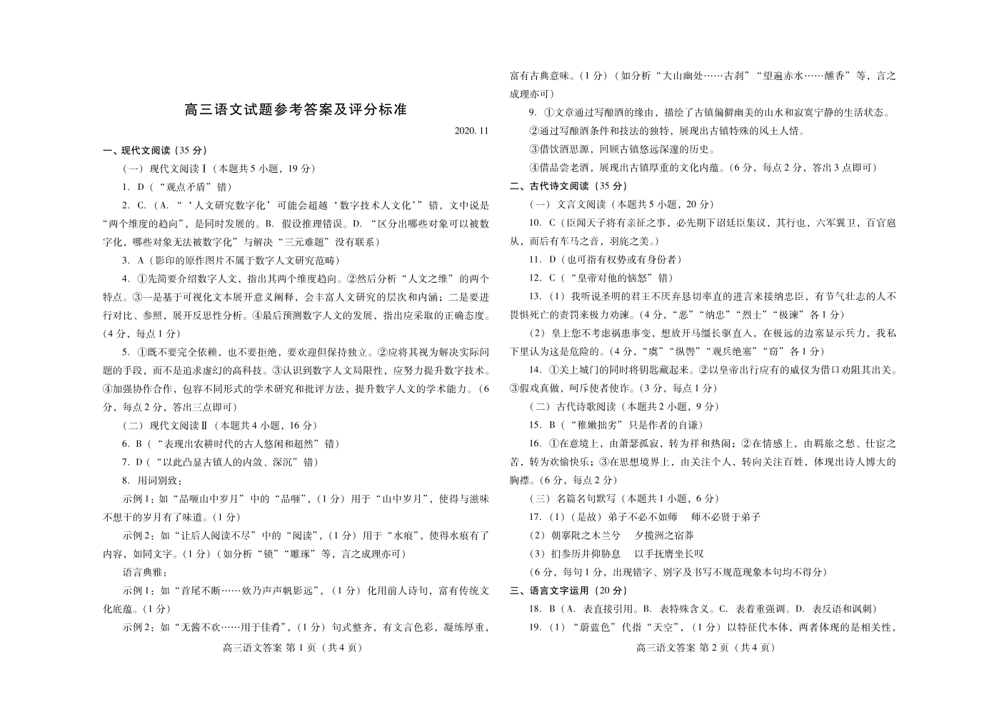 山东省潍坊市2020.11高三年级期中考试语文答案