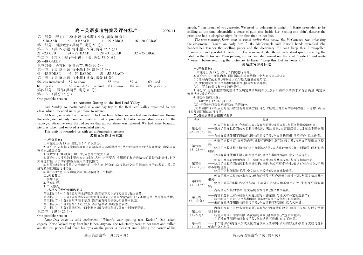山东省潍坊市2020.11高三年级期中考试英语答案