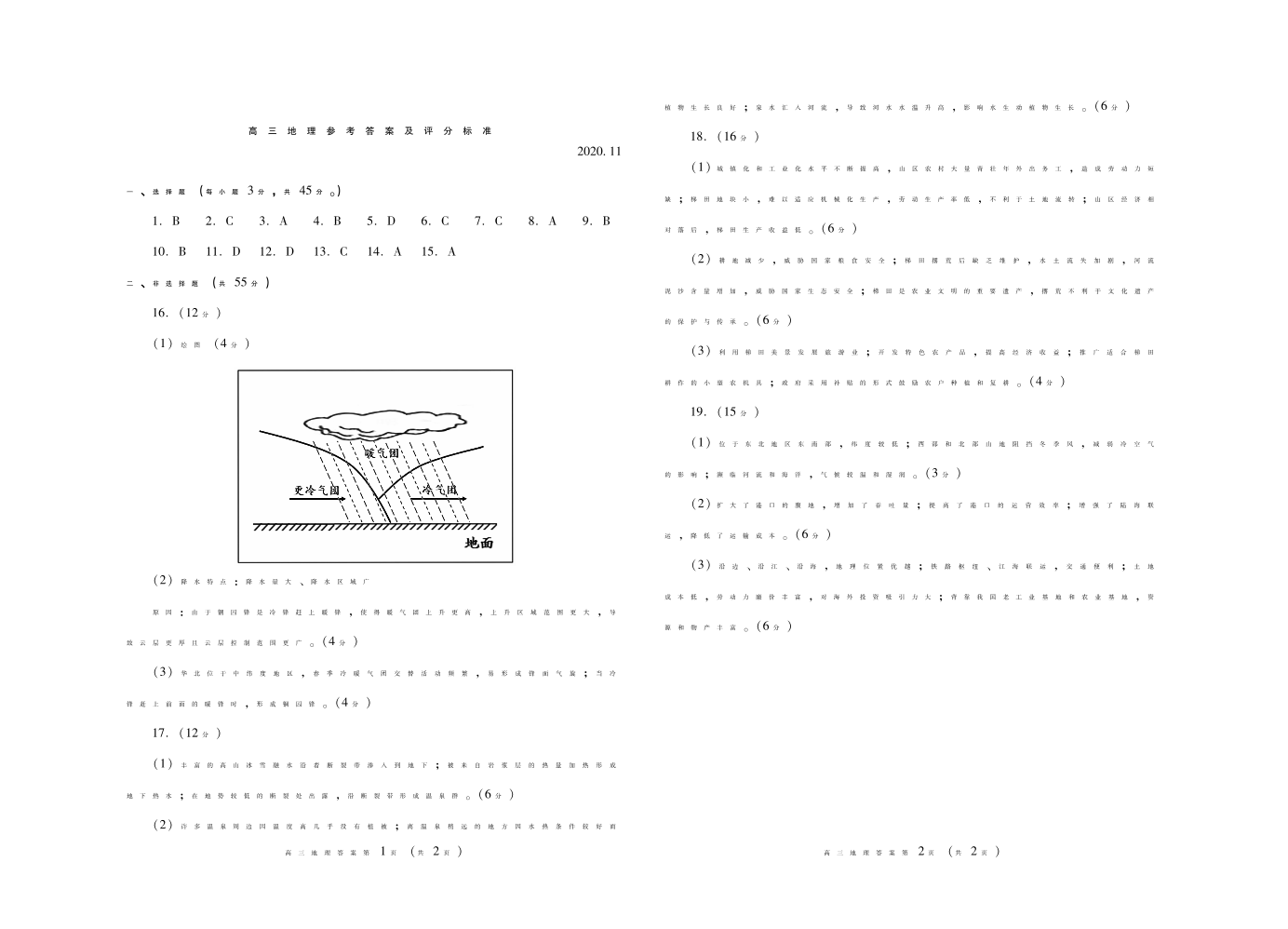 山东省潍坊市2020.11高三年级期中考试地理答案