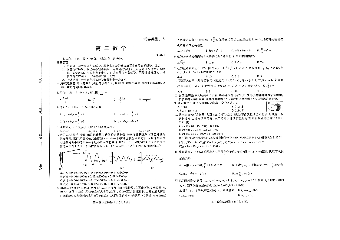 山东省潍坊市2021.1高三年级期末统考试题数学