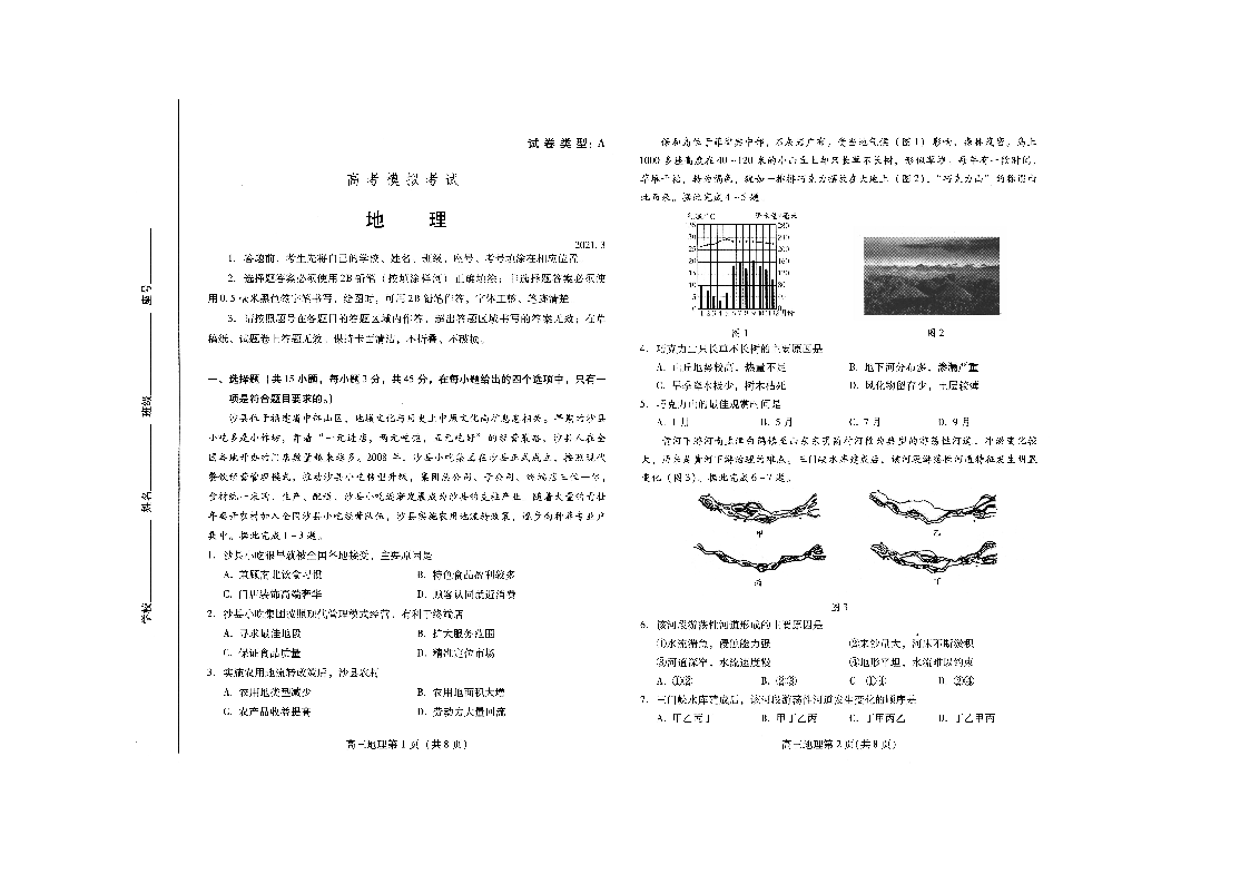 山东省潍坊市2021.3高三年级第一次模拟考试地理