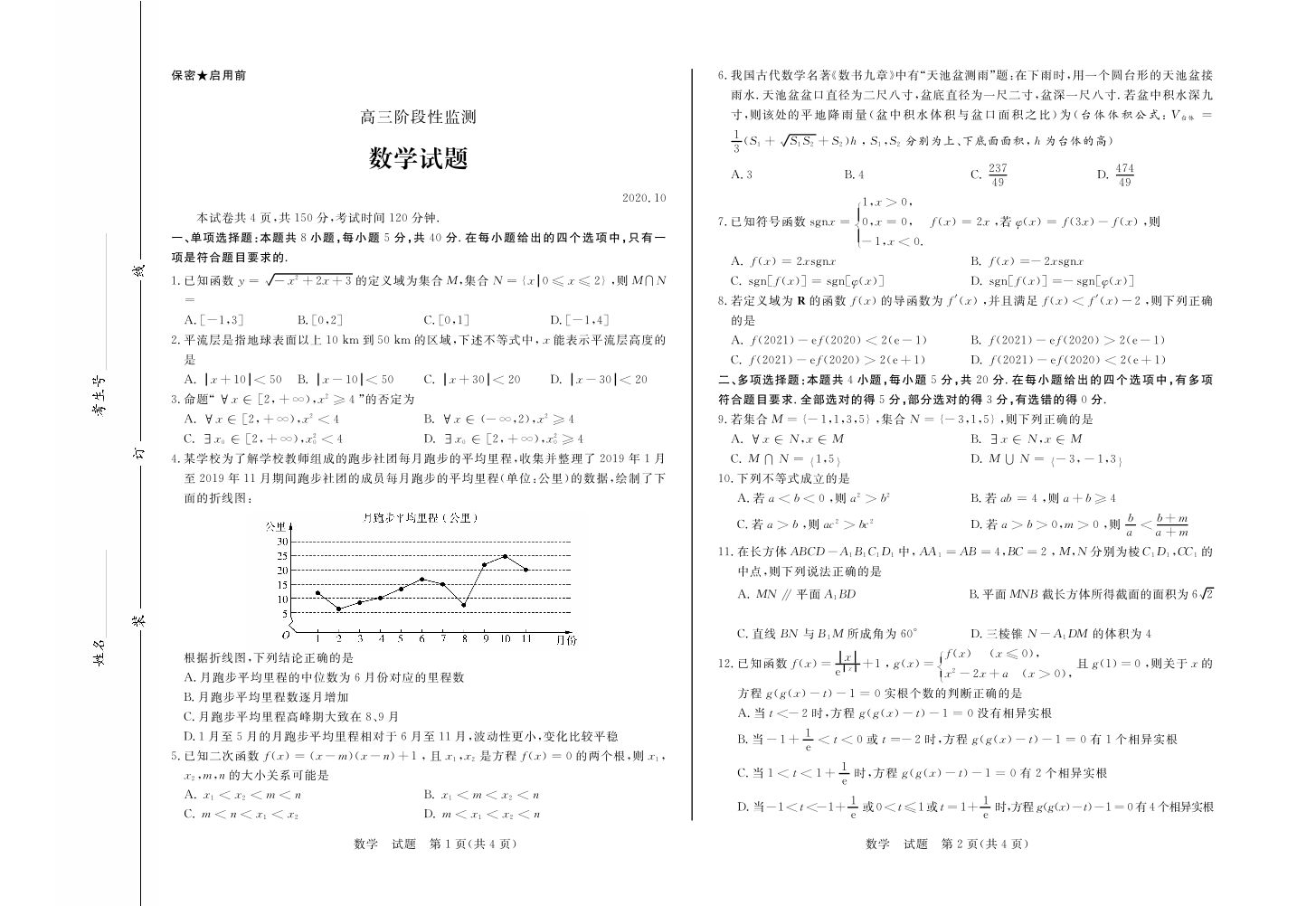 山东省潍坊市五县区2020.10高三年级阶段性监测试题数学