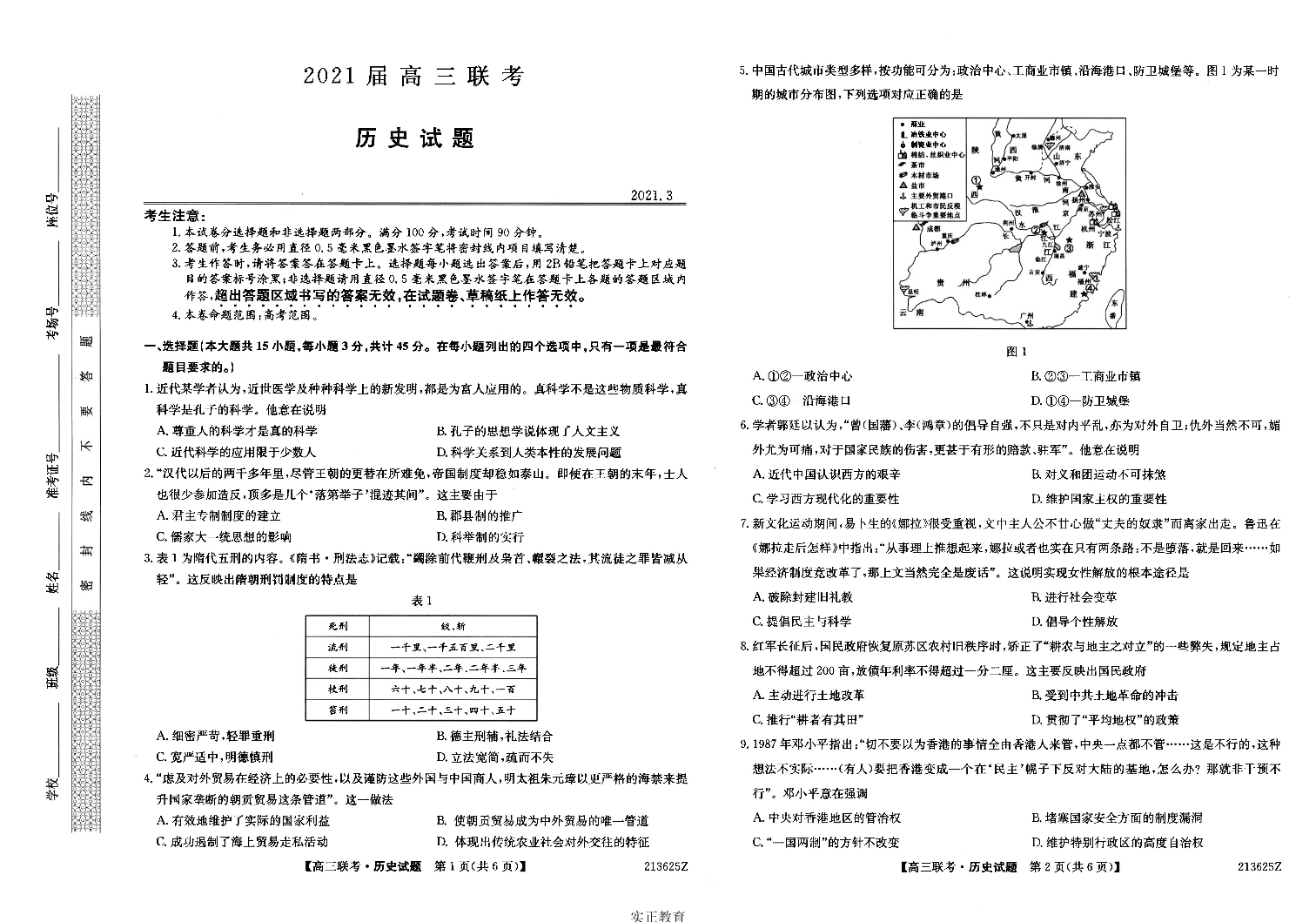 山东省菏泽市2021.3高三年级统一模拟检测历史