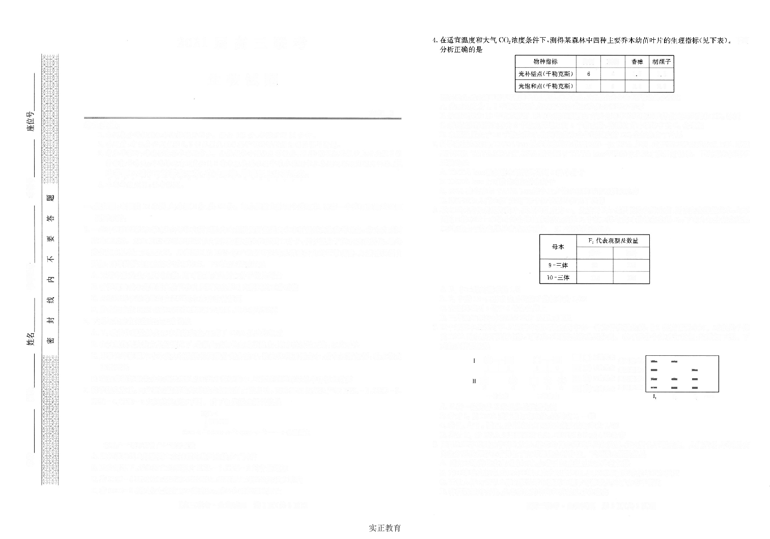 山东省菏泽市2021.3高三年级统一模拟检测生物