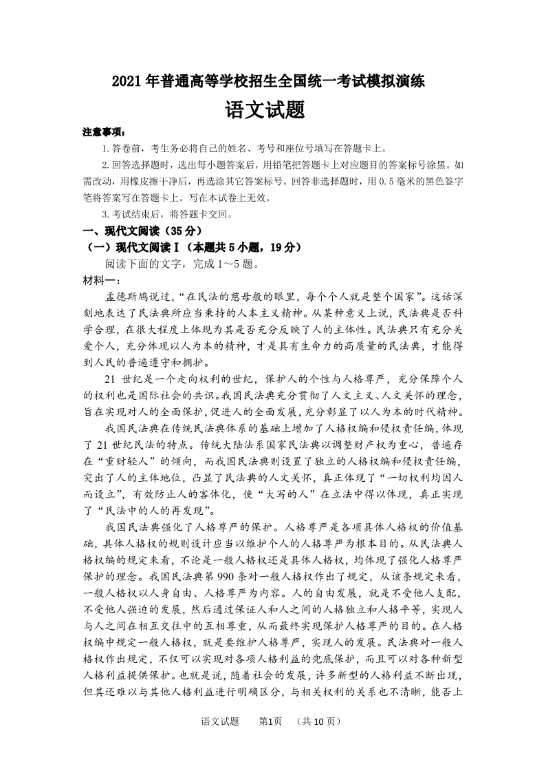 山东省师范大学附属中学2021.5考前模拟检测语文