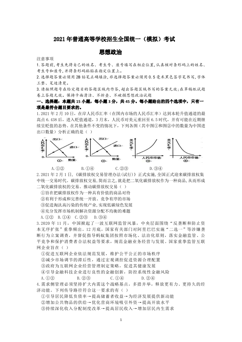 山东省师范大学附属中学2021.5考前模拟检测政治