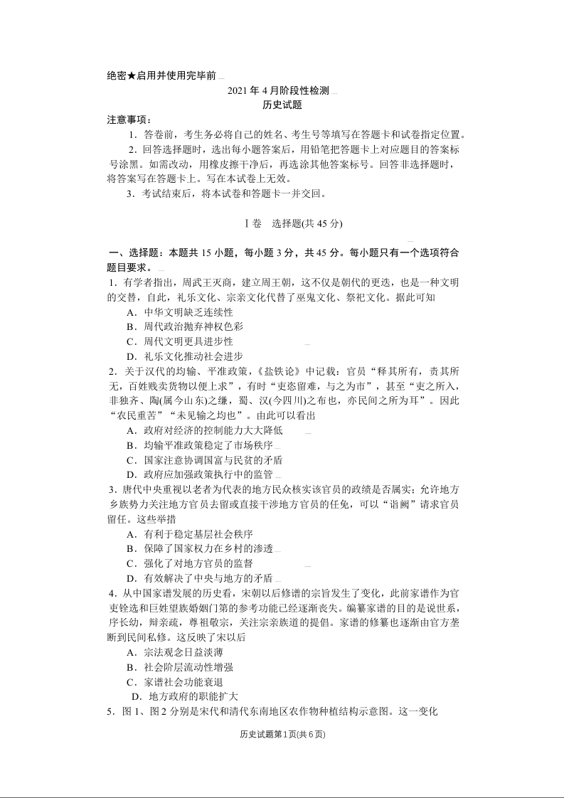 山东省济南市2021.4十一校联合模拟检测历史