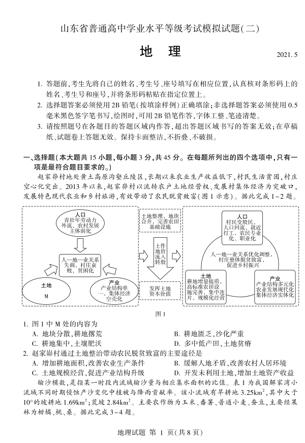 山东省临沂市2021.5临沂市高三第二次模拟考试地理试题及答案