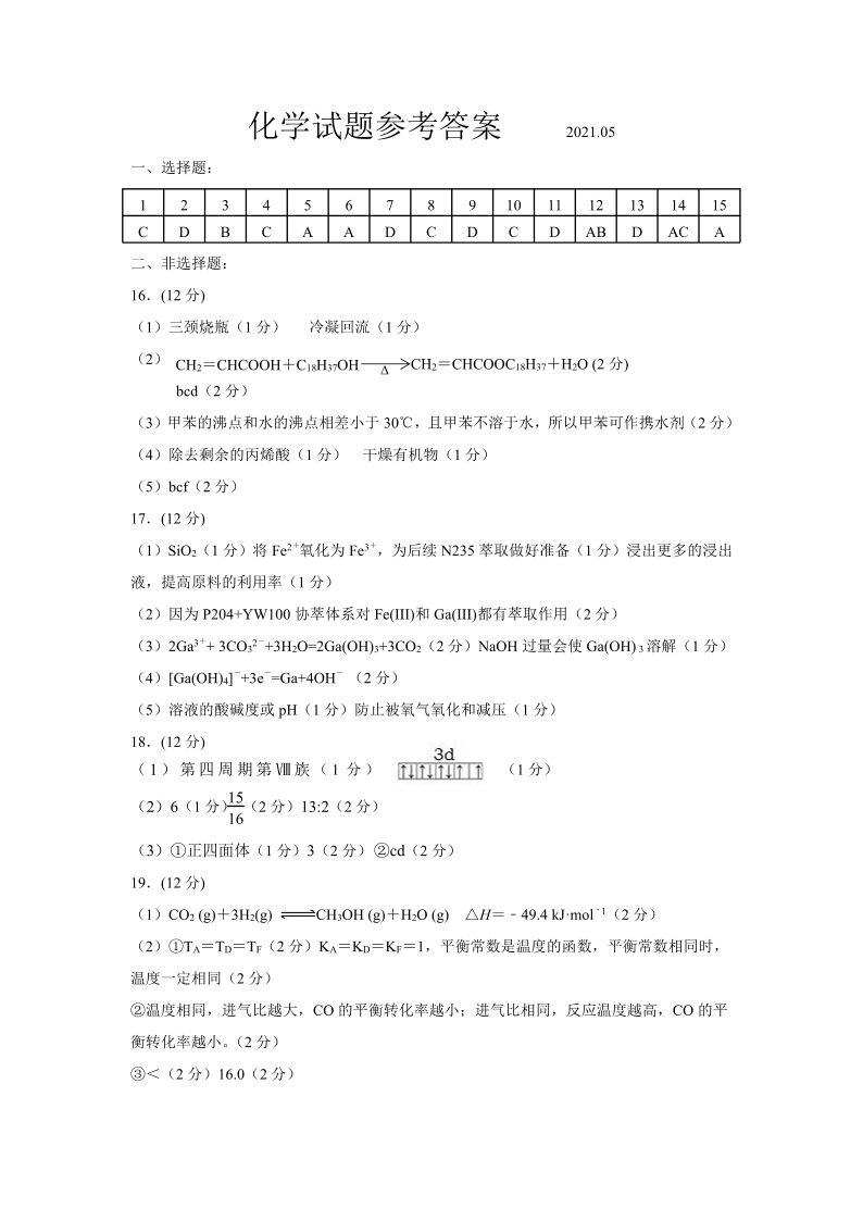 山东省青岛市2021.5高三第三次模拟考试化学答案