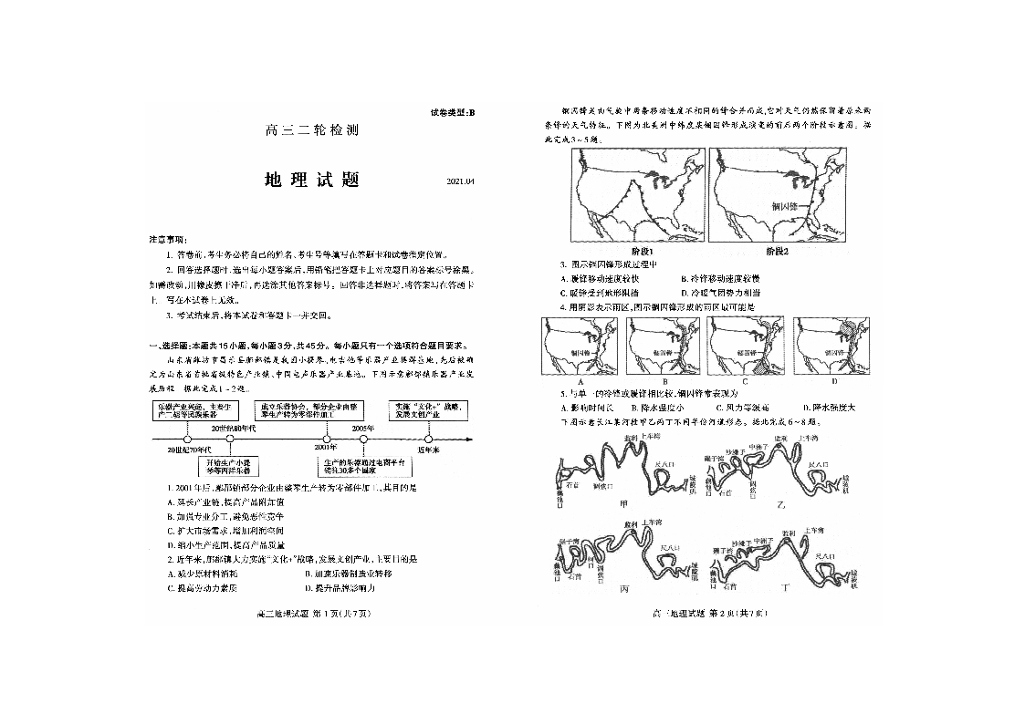 山东省泰安市2021.4高三第二次模拟考试地理