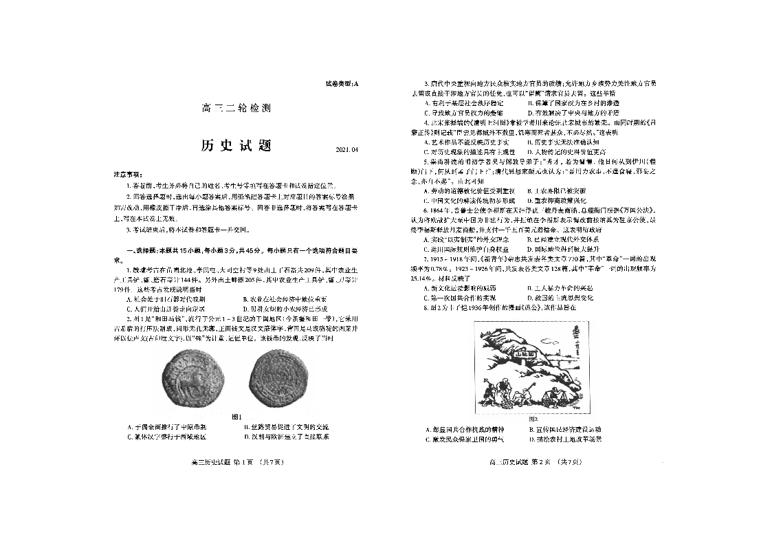 山东省泰安市2021.4高三第二次模拟考试历史