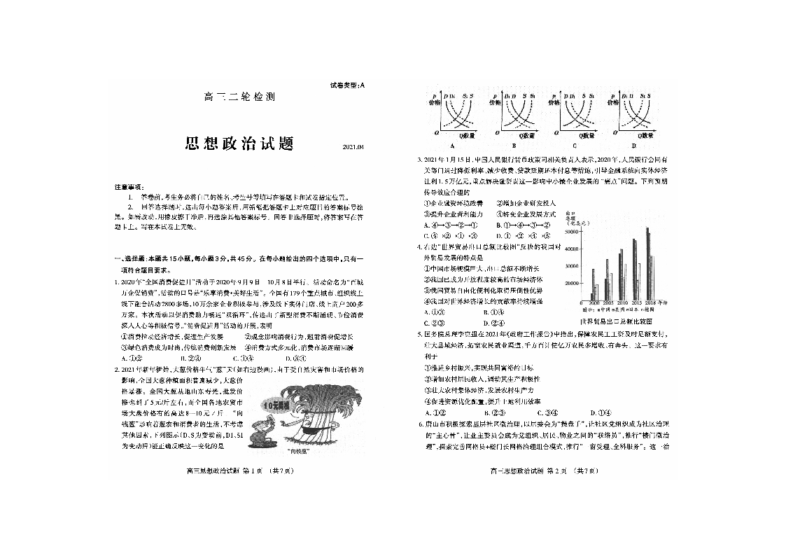 山东省泰安市2021.4高三第二次模拟考试政治
