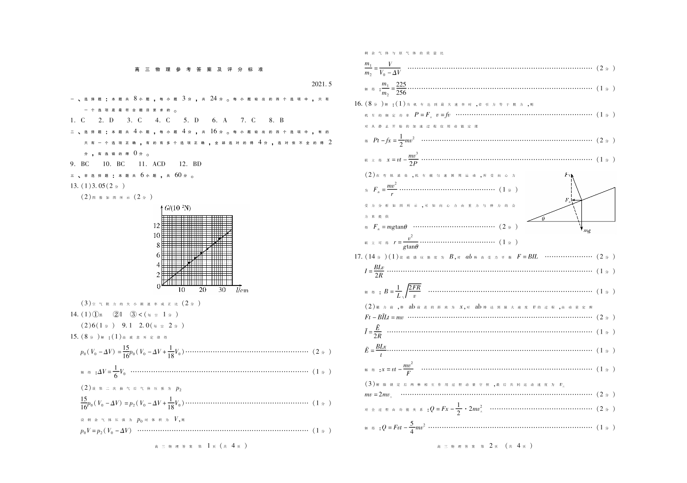 山东省潍坊市2021.5高三第三次模拟考试物理答案