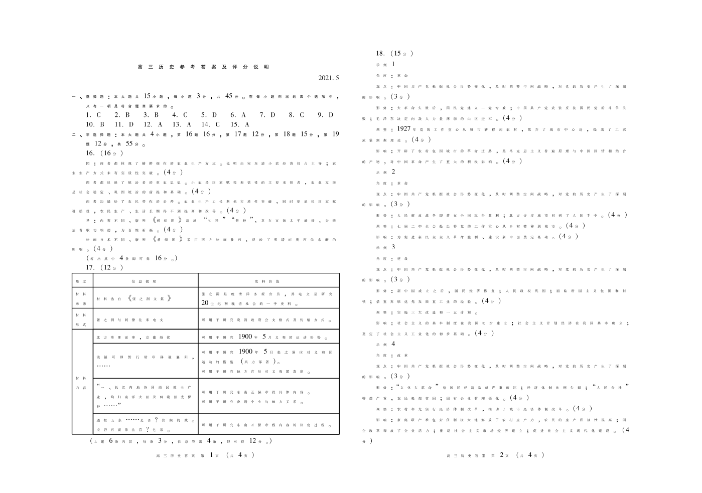 山东省潍坊市2021.5高三第三次模拟考试历史答案