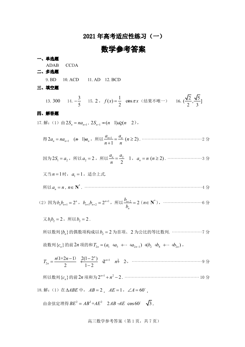 山东省烟台市2021.5高三第二次模拟考试数学答案