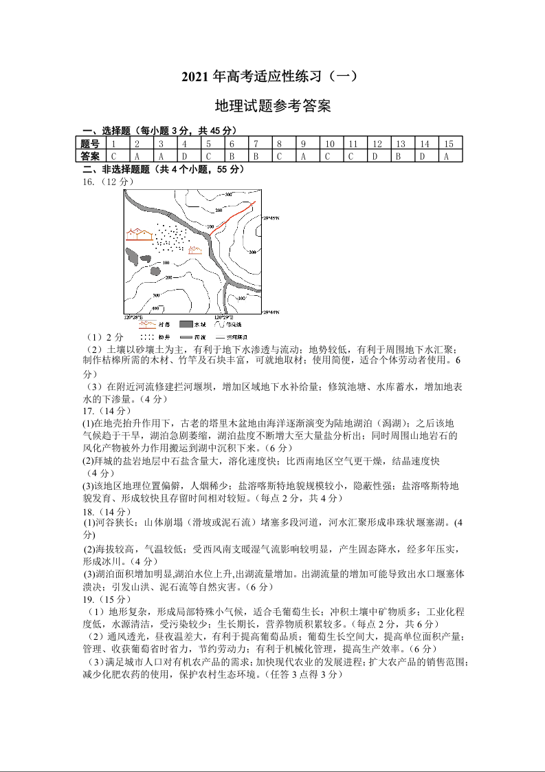 山东省烟台市2021.5高三第二次模拟考试地理答案