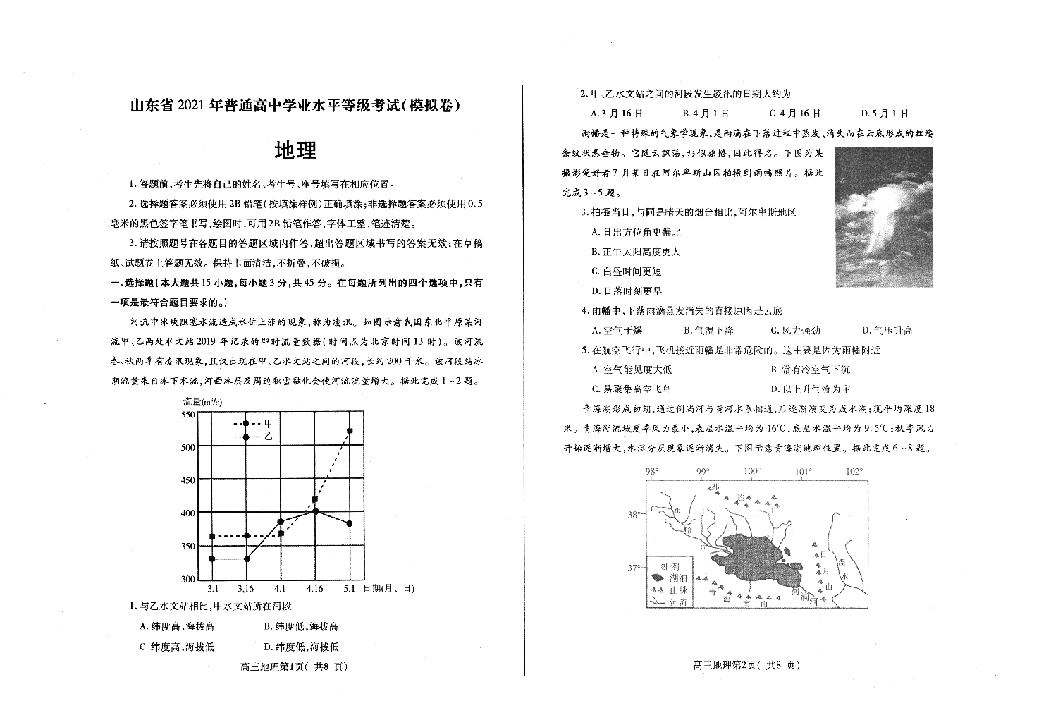 山东省烟台市2021.5高三第三次模拟考试地理试题