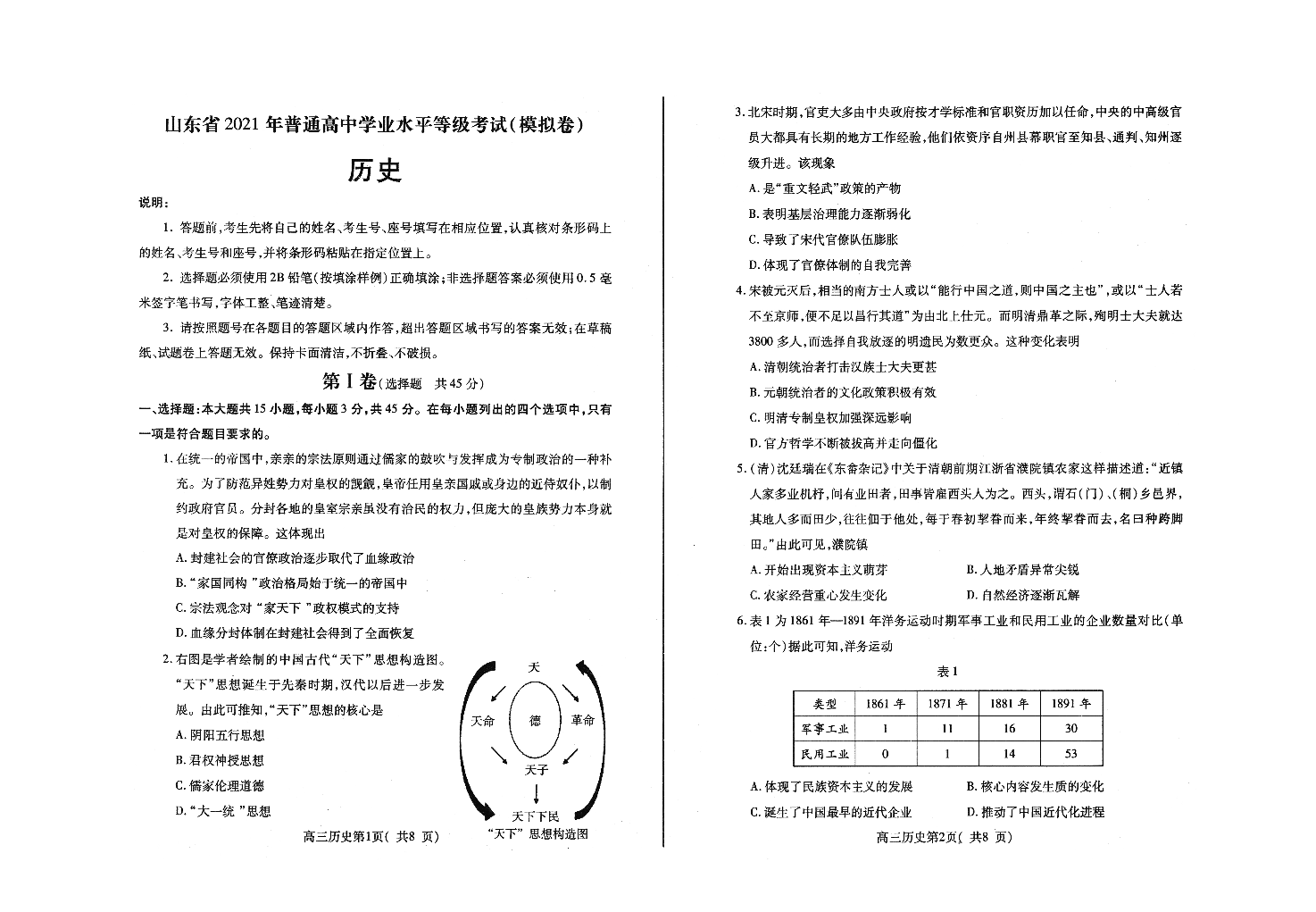 山东省烟台市2021.5高三第三次模拟考试历史试题