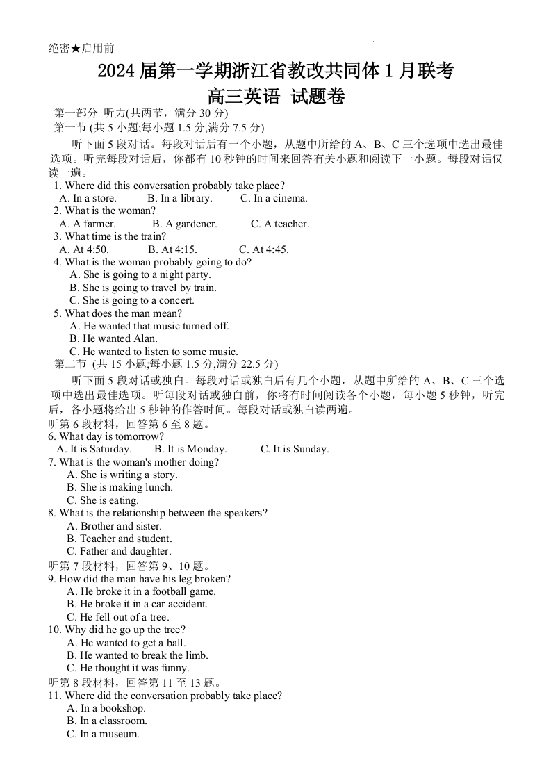 2023学年第一学期浙江省七校教研共同体调研测试 英语