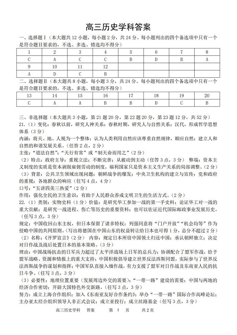 浙江省北斗星盟2023-2024学年高三上学期12月适应性考试 历史答案
