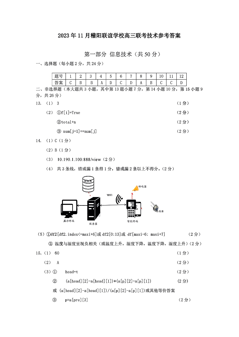 浙江省稽阳联谊学校2023-2024学年高三上学期11月联考 技术答案