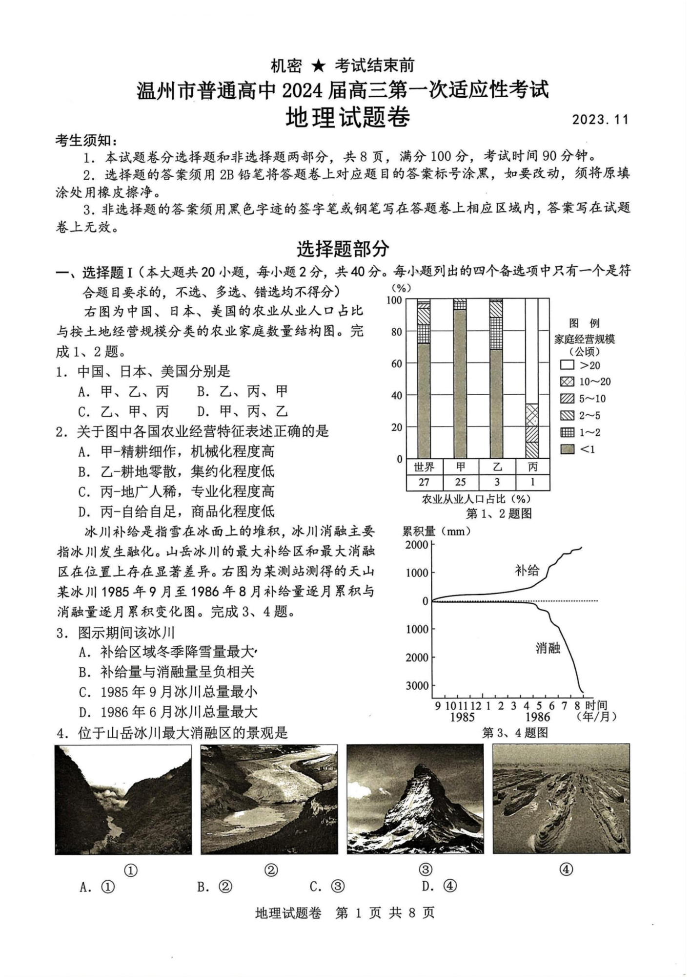 2024届浙江省温州市普通高中高三上学期第一次适应性考试(一模)地理