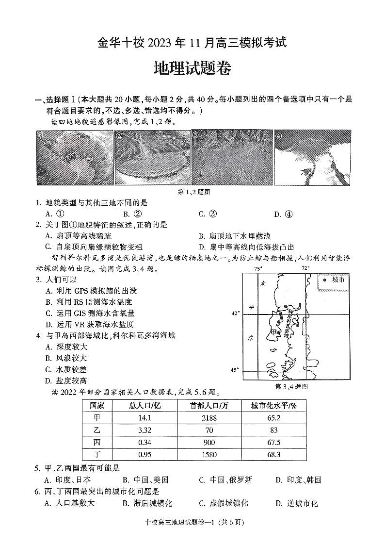 浙江省金华十校2023-2024学年高三上学期11月模拟考试 地理