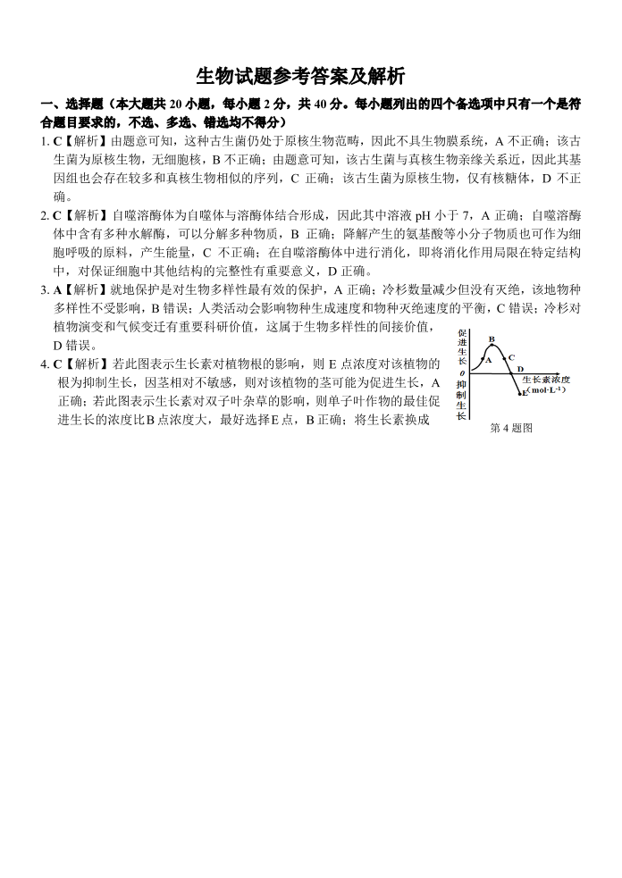 浙江省名校协作体2023-2024学年高三上学期开学适应性考试 生物答案