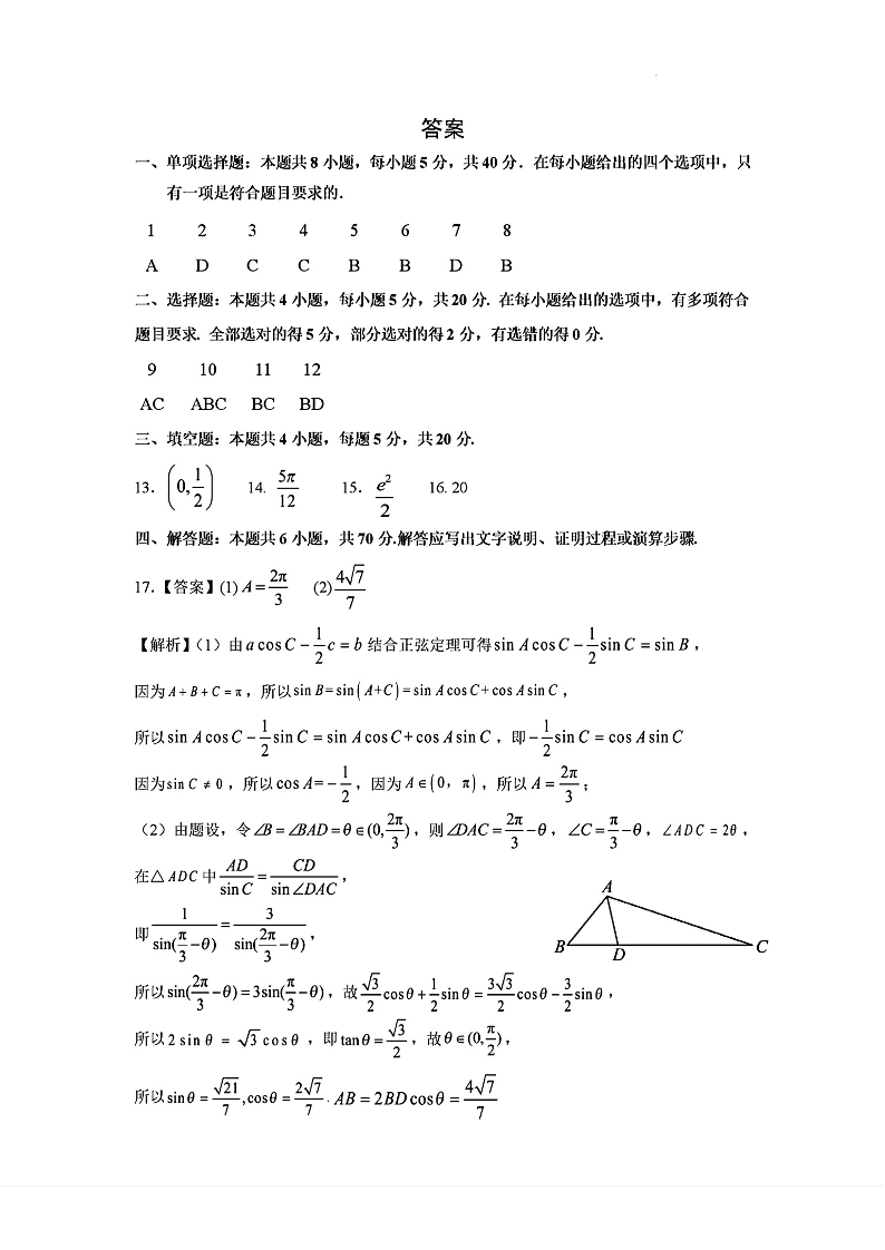 2023年浙江省高考四校联盟高三模拟卷 数学答案