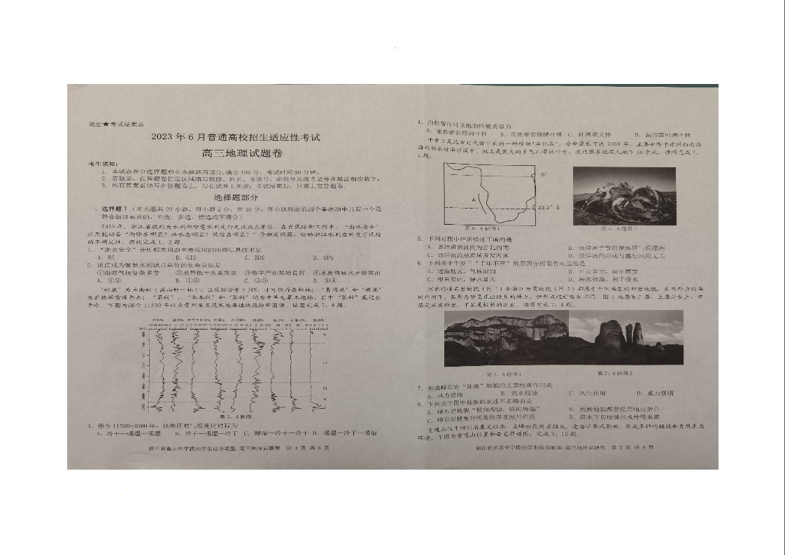 2023届浙江省重点中学拔尖学生培养联盟高三6月适应性考试地理试题