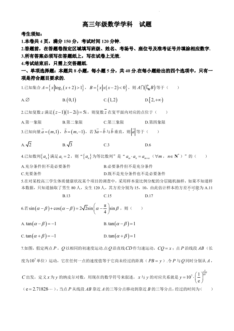 浙江省北斗星盟2024届高三下学期5月适应性联考+数学