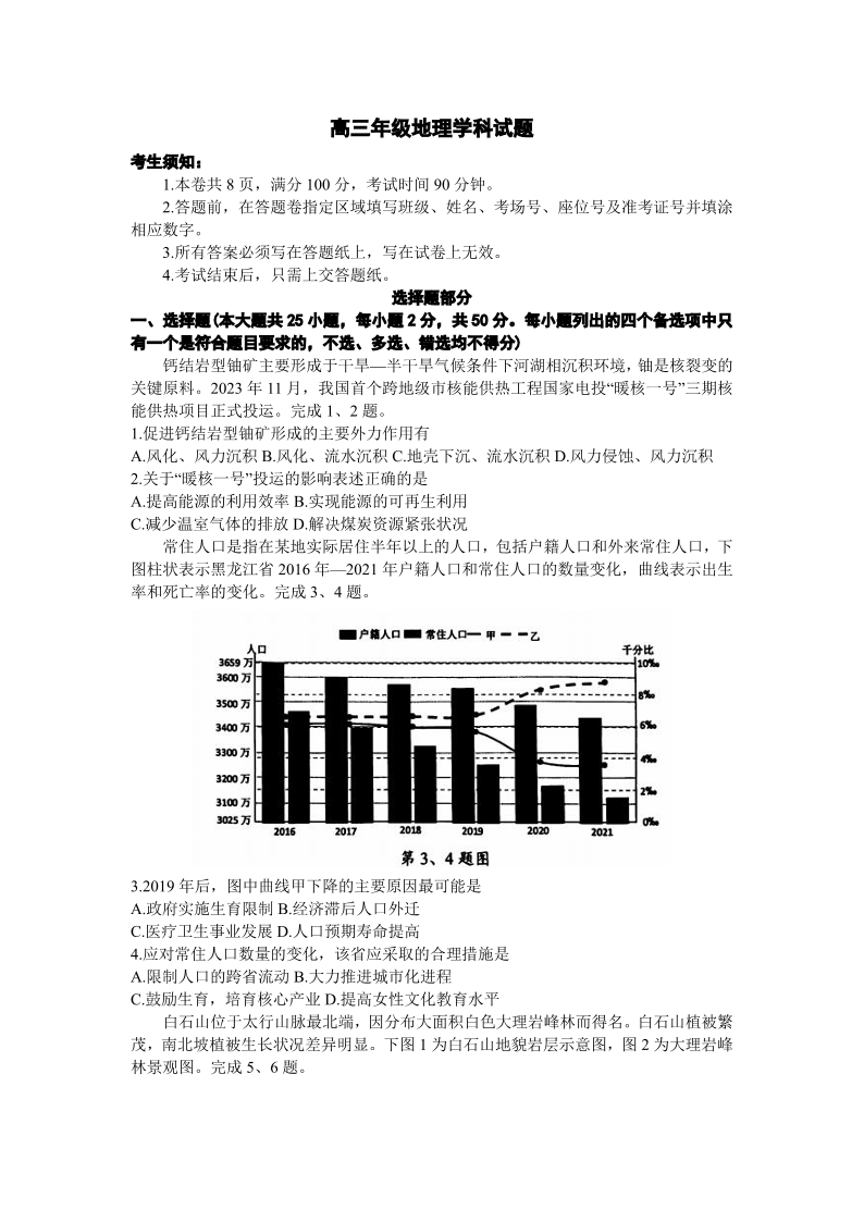 浙江省北斗星盟2024届高三下学期5月适应性联考+地理