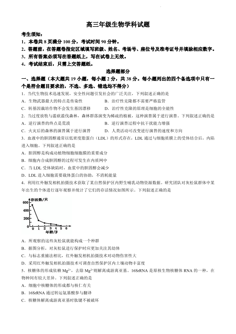 浙江省北斗星盟2024届高三下学期5月适应性联考+生物
